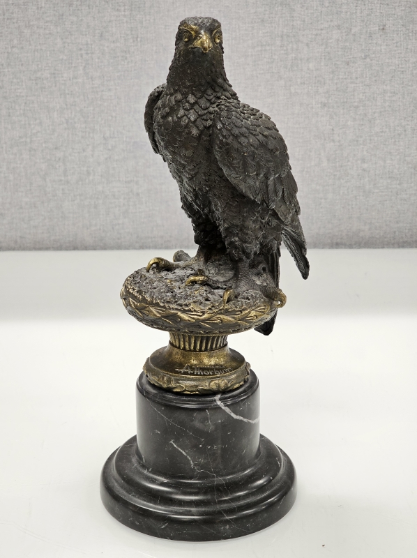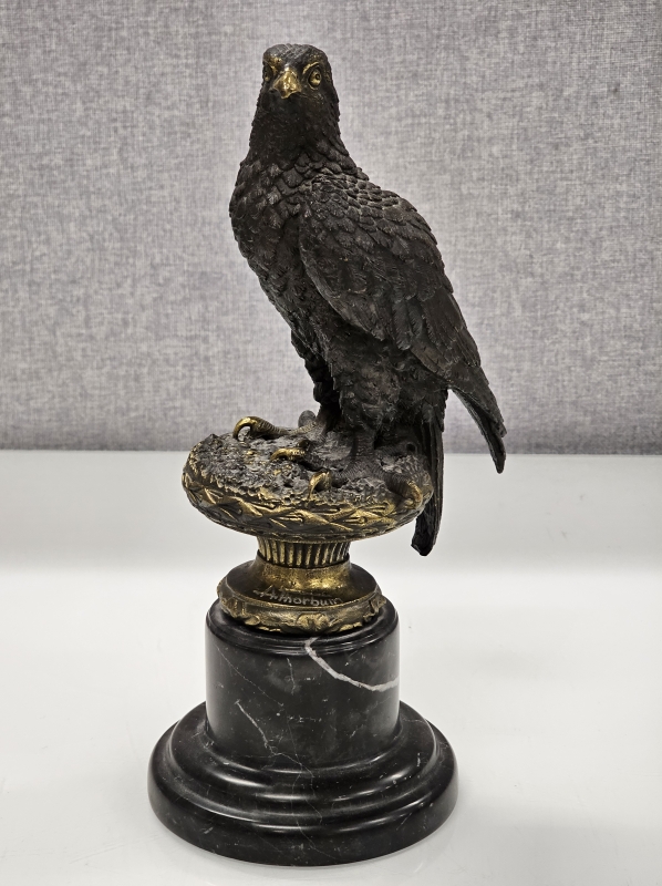 #1928 - Pronssinen lintupatsas marmorijalustalla