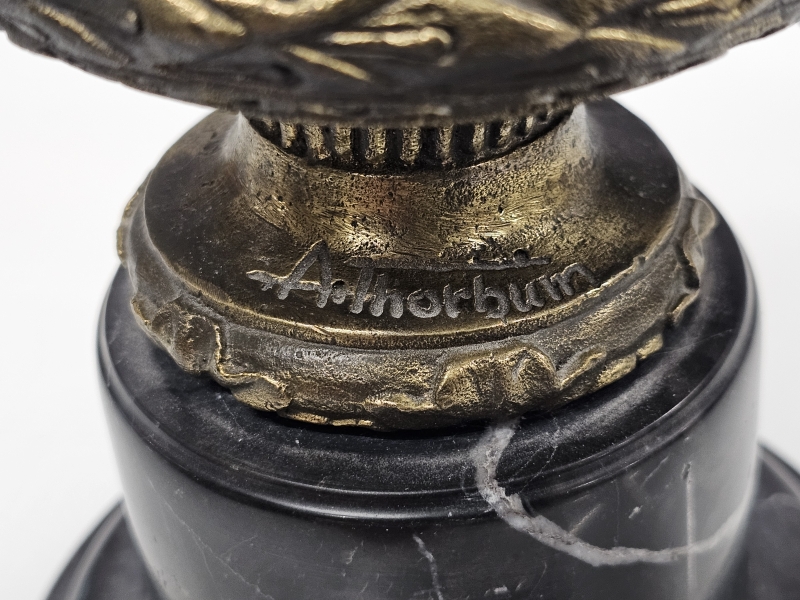 #1928 Pronssinen lintupatsas marmorijalustalla