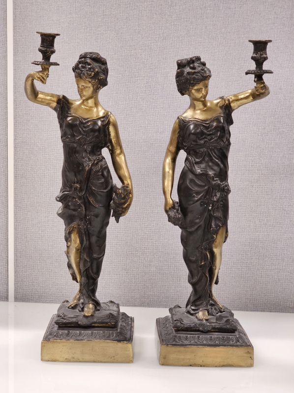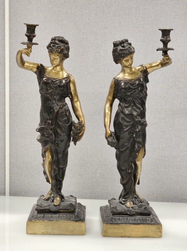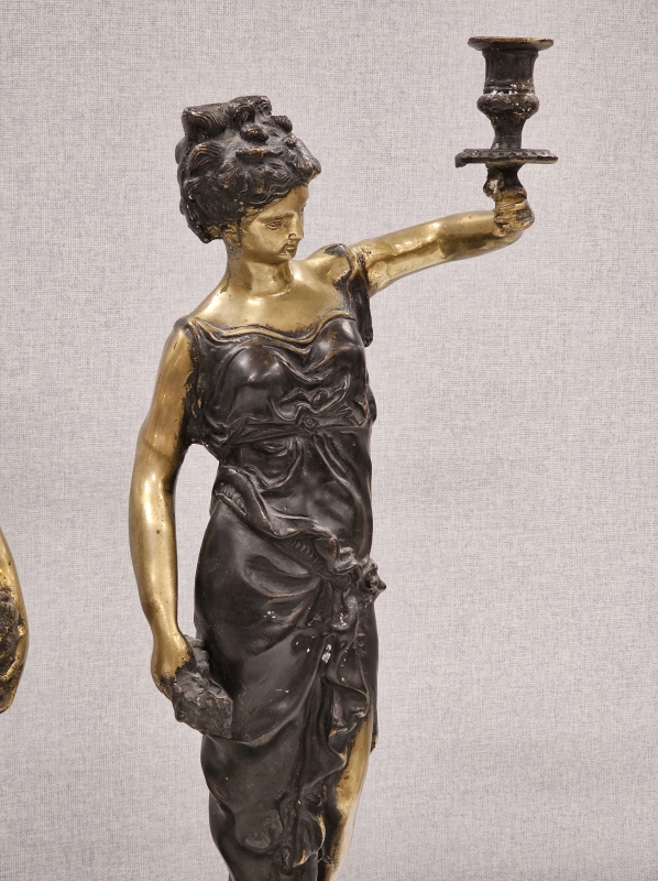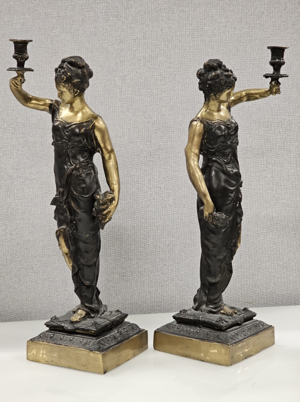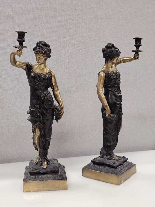 #1930 - 2kpl isoja pronssisia pöytäkynttelikköjä naispatsailla