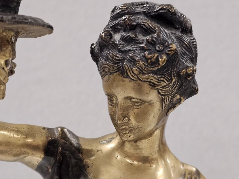 #1930 2kpl isoja pronssisia pöytäkynttelikköjä naispatsailla