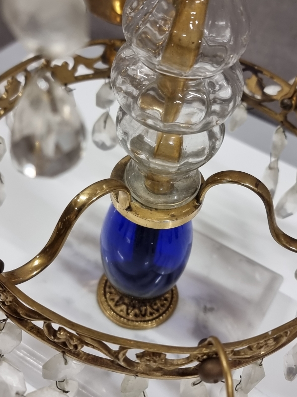 #2288 Pöytäkynttelikkö kristalleilla ja marmorijalustalla