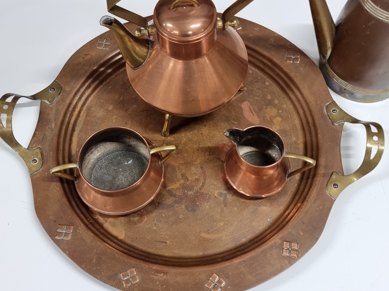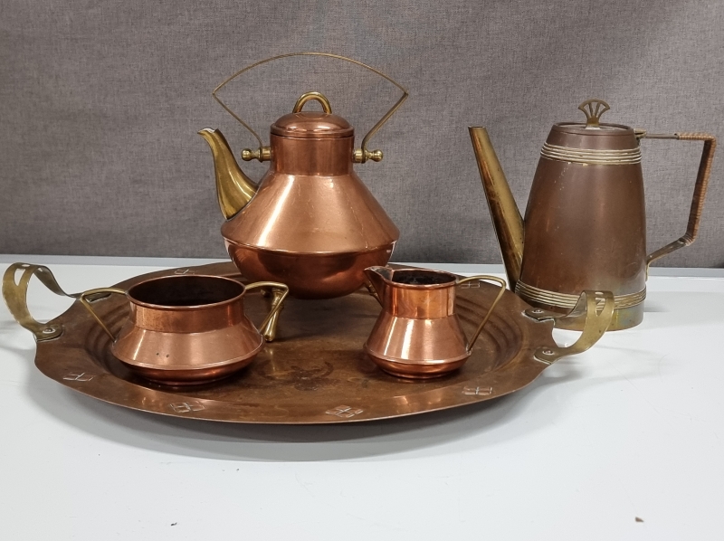 Tarjotin + 2 kannua ja kermakko + sokerikko. Tarjottimen l:45cm