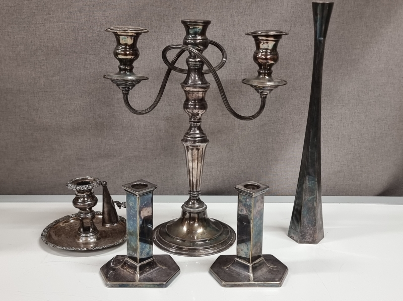 #2293 5kpl metallisia kynttilänjalkoja