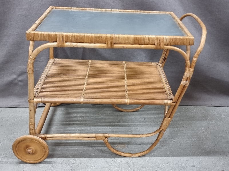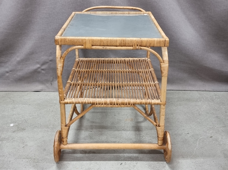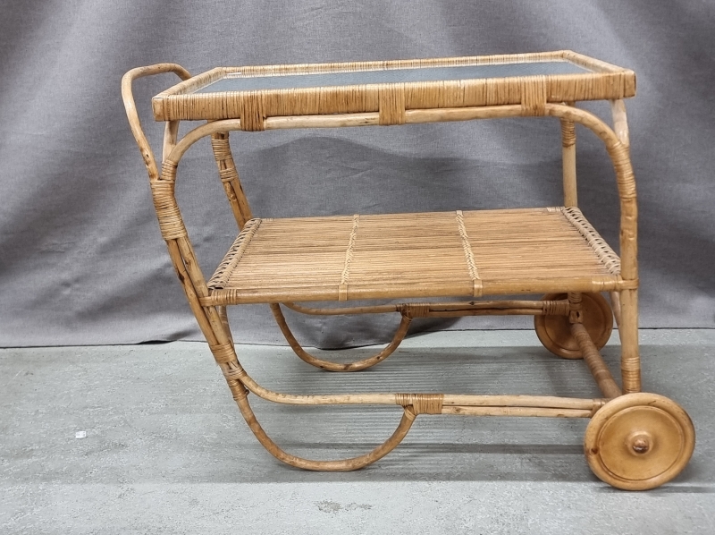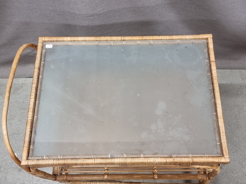 #2295 - Rottinkinen tarjoiluvaunu lasikannella