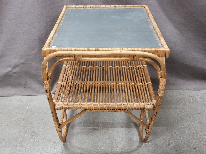 #2295 Rottinkinen tarjoiluvaunu lasikannella