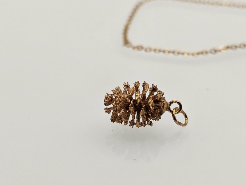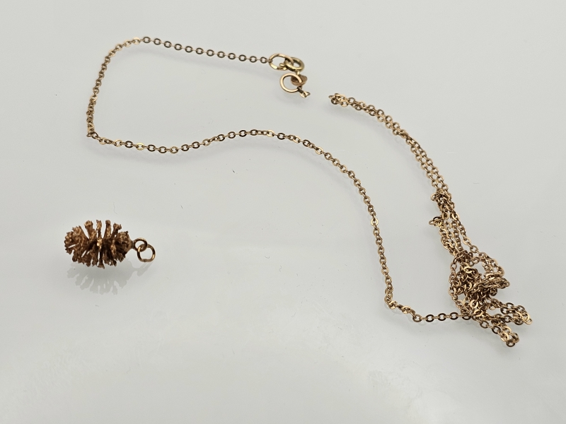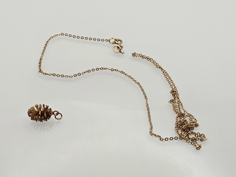 #1011 14k kultainen käpy -riipus ja katkennut 14k ketju, 4,19g