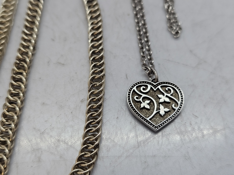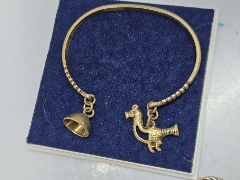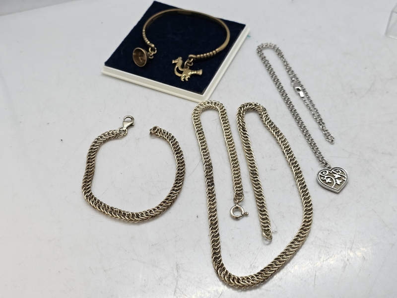 #1490 - Hopeisia koruja + Kalevala koru pronssinen Lintunen rannekoru
