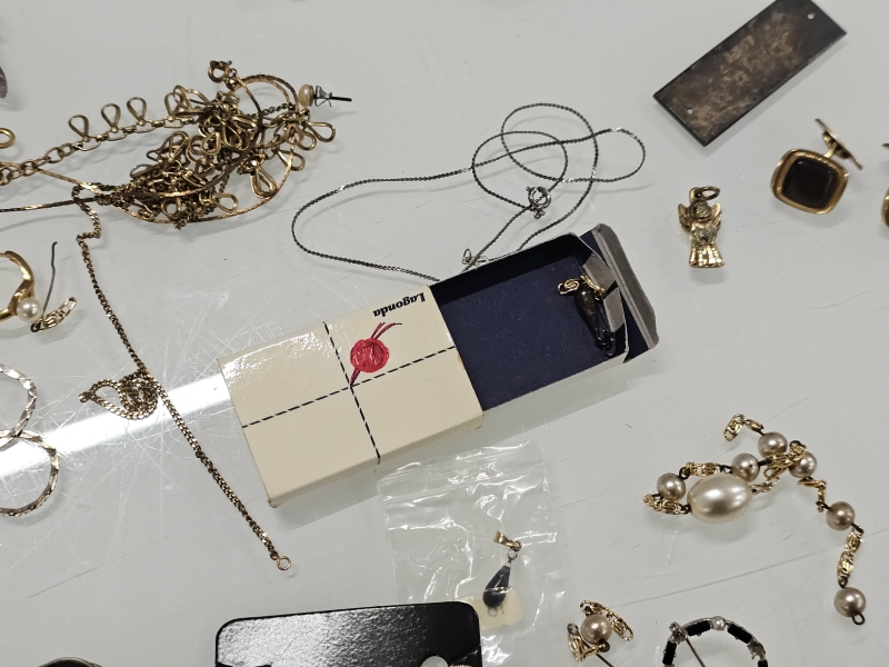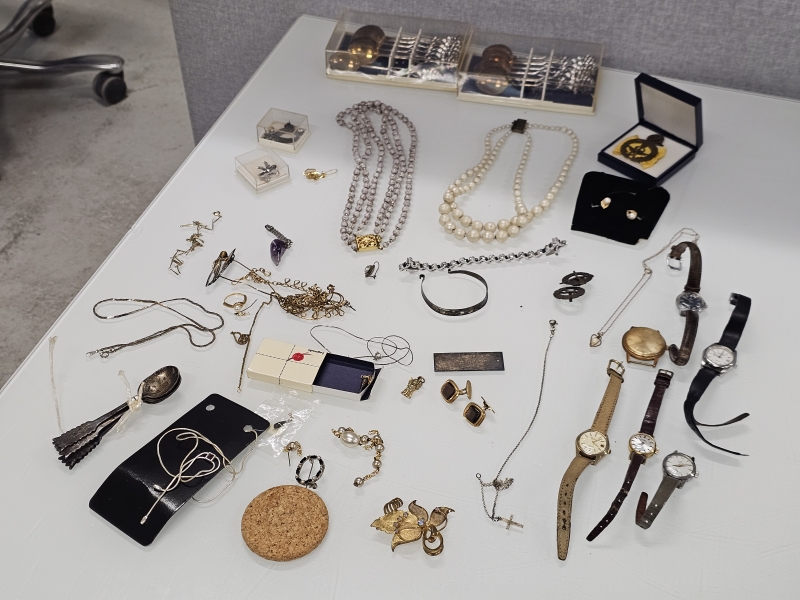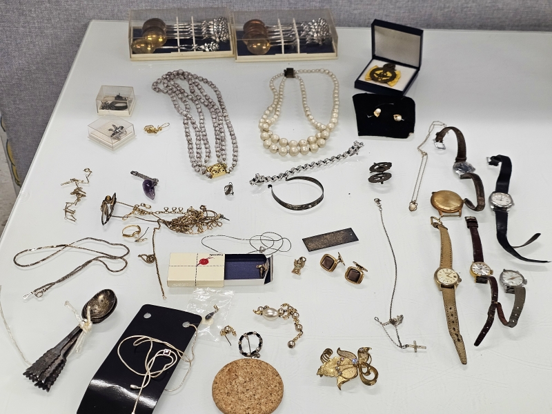 #1491 - Erä kelloja ja koruja, mm. vähäinen määrä hopeaa