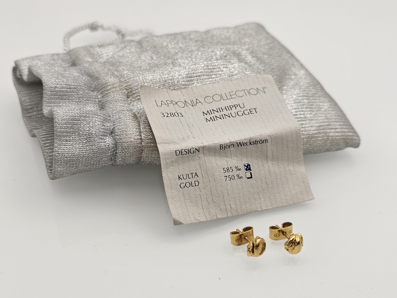 #1477 - 14k kultaiset korvakorut, Björn Weckström Lapponia, "Minihippu", 1,36g