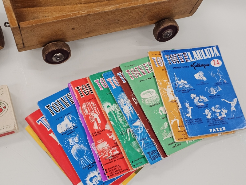 #2369 - Erä tavaraa: Mm. avaamaton Työmies, Toivelauluja -kirjoja & puuauto