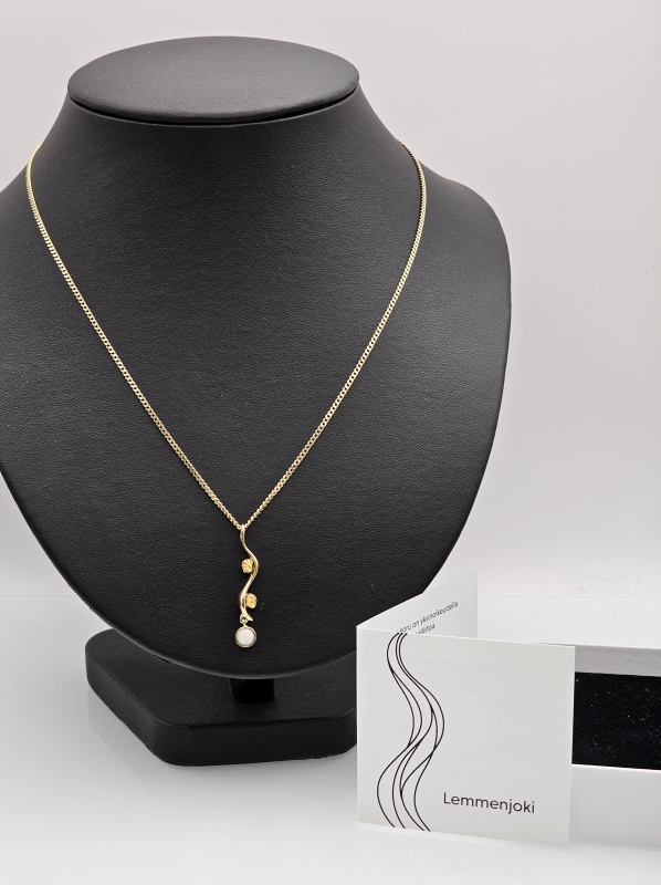 #1530 14k kultainen Assi Arnimaa-Leinonen "Lemmenjoki" riipus + kaulaketju, 6g