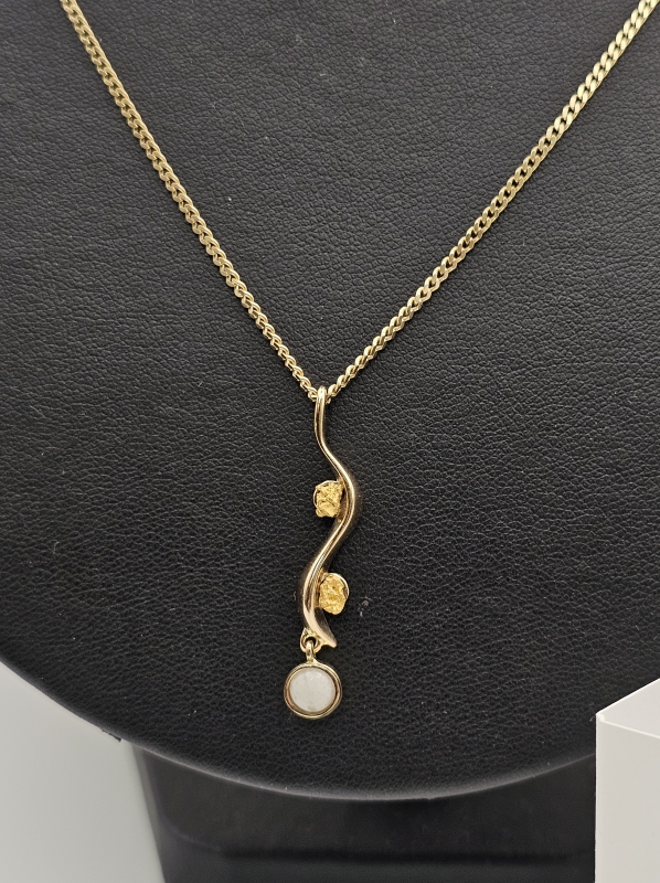 #1530 - 14k kultainen Assi Arnimaa-Leinonen "Lemmenjoki" riipus + kaulaketju, 6g