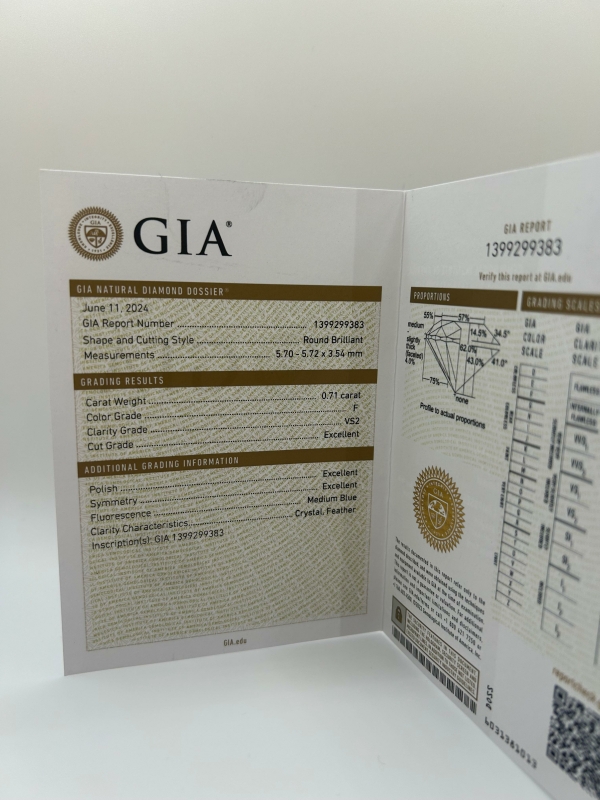 #1544 18k valkokultainen sormus 0,71ct Top Wesselton F VS2 (3 x EX GIA) timantilla, 3,32g
