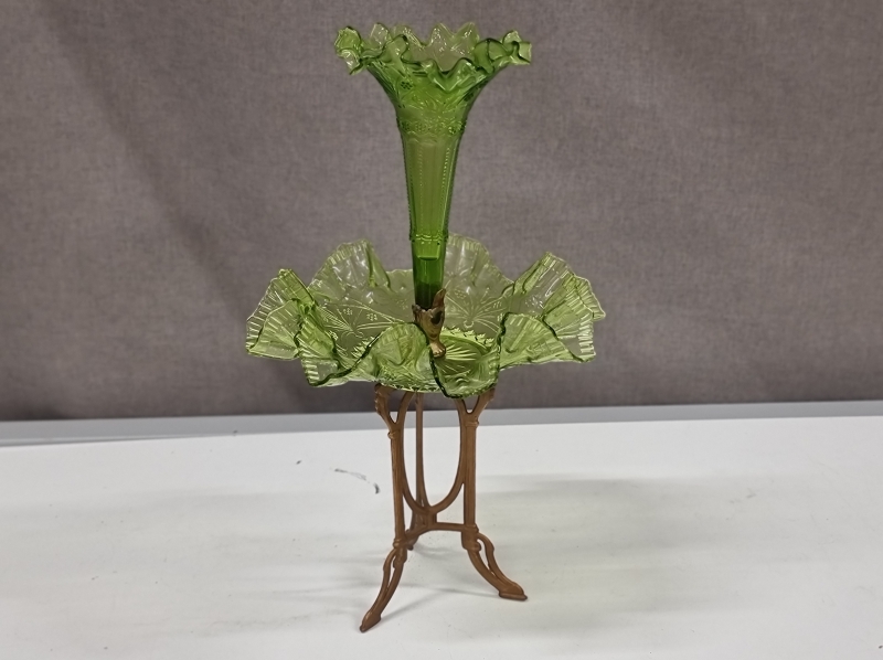 #2033 - 1900 - luvun jugend-lasimalja metallijalalla
