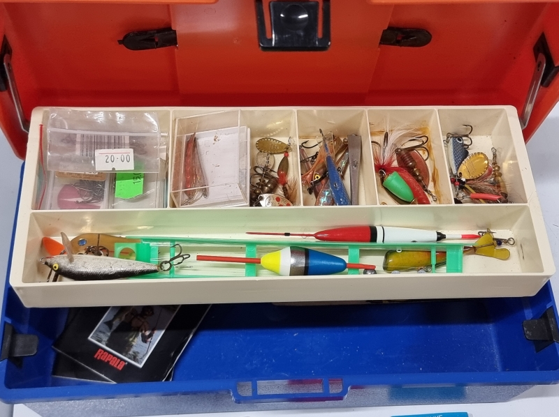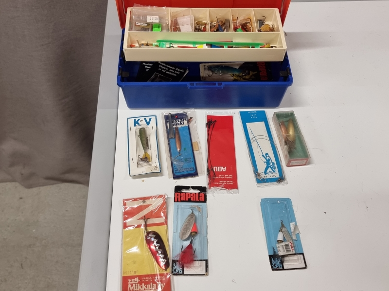 #2076 Kalastustarvikkeita pakissa, mm. Rapala