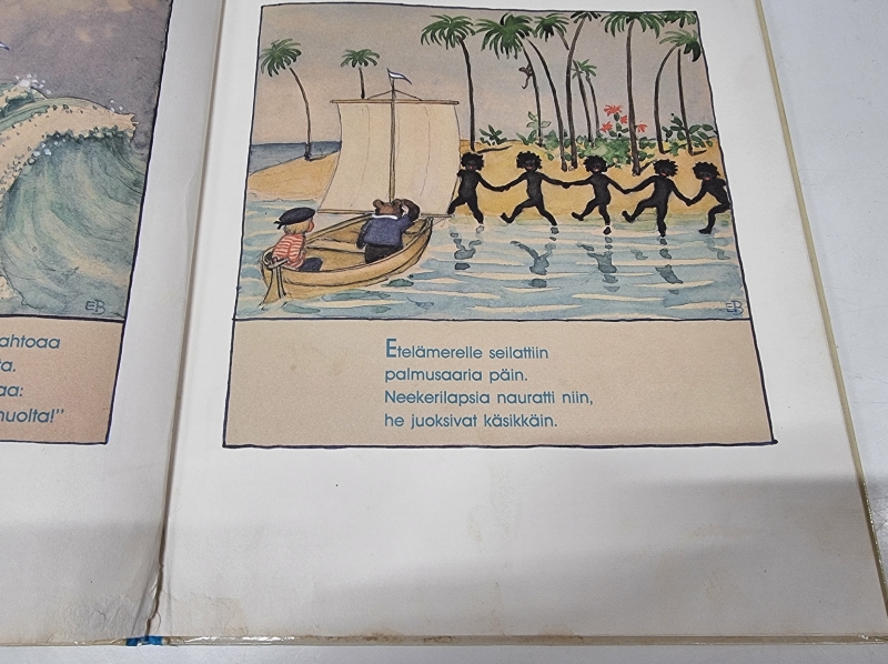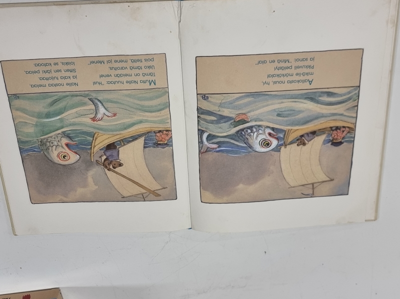 Toimintaa ei testattu. Kirjan selkämys rikki. Lelun pituus 30cm.