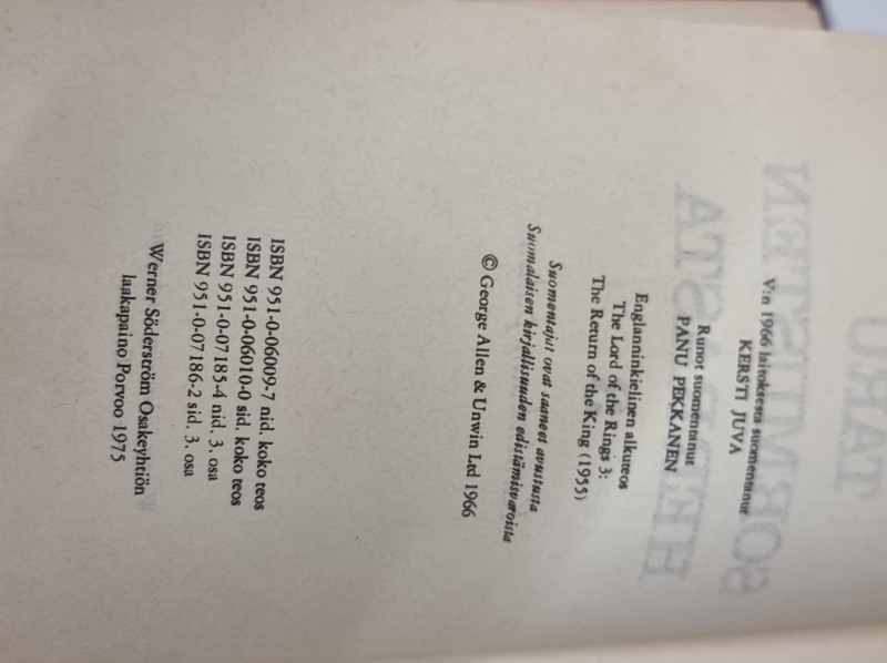 #2083 J. R. R. Tolkien Taru sormustenherrasta trilogia, ensipainos 1973-75
