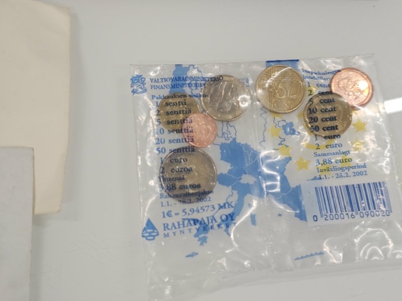 #1558 - Iso erä keräilyseteleitä, kolikoita ja vanhoja rahoja eri maista