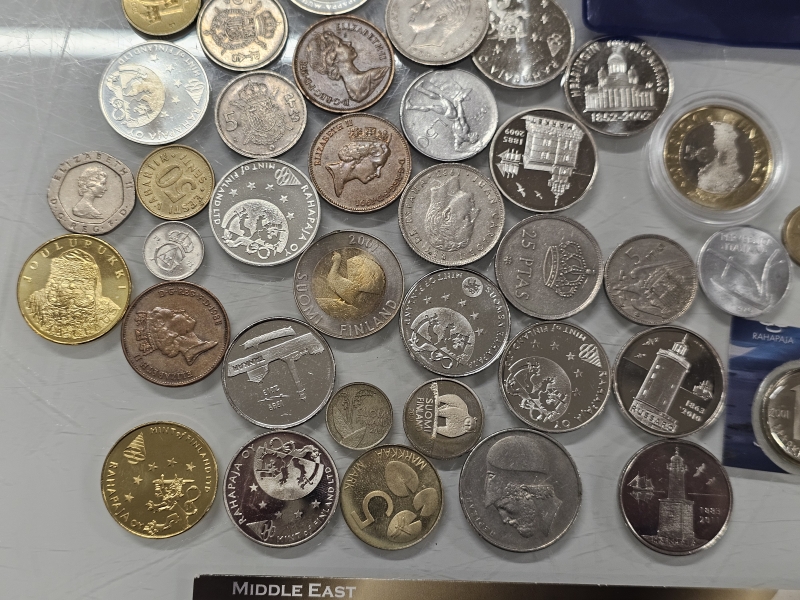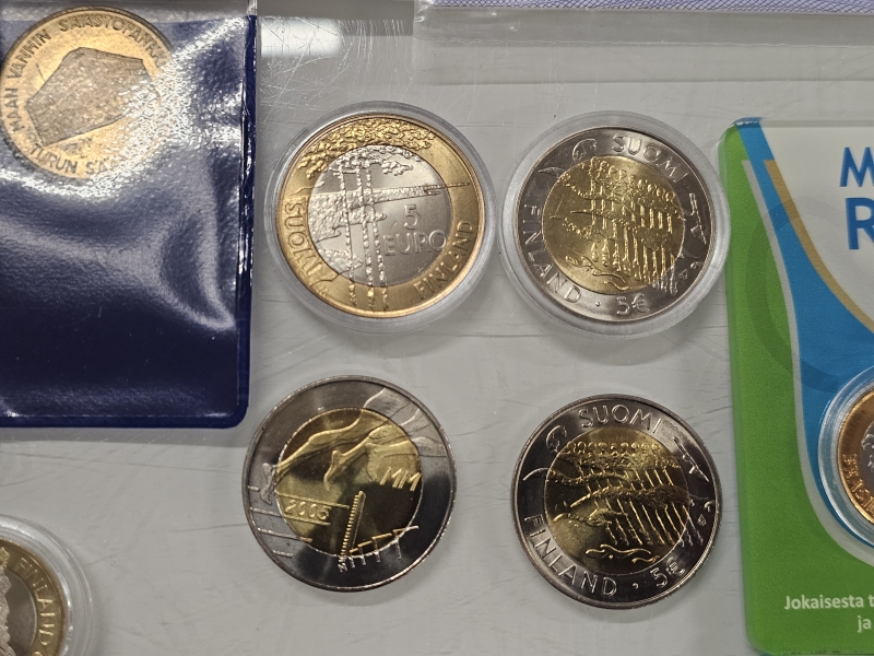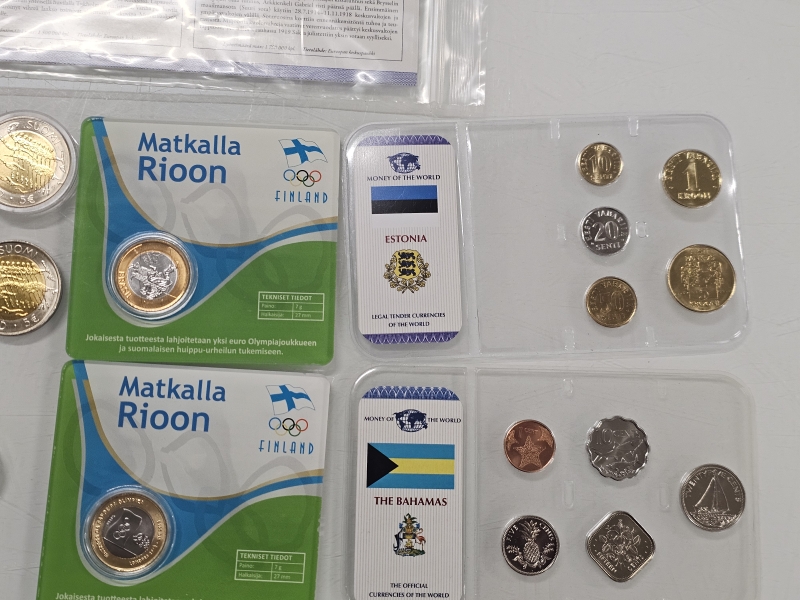 #1559 Erä kolikoita, keräilyrahoja ja eri maiden rahasarjoja