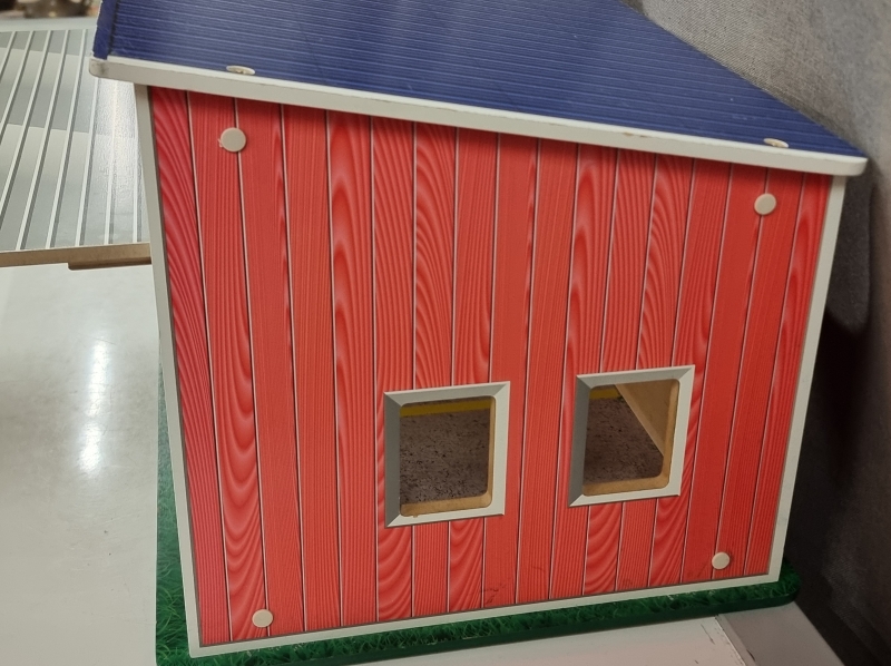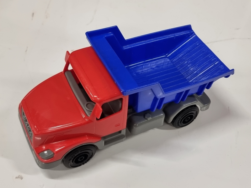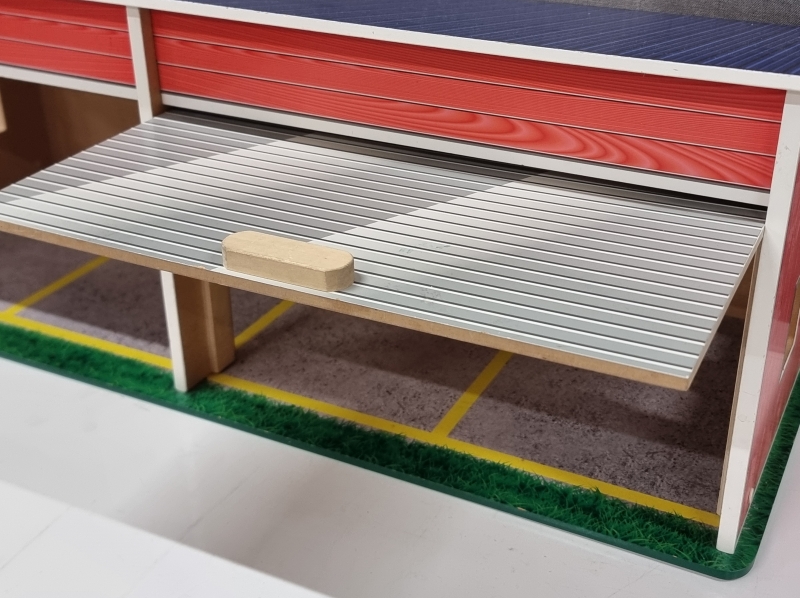 #2464 - Leikkiautotalli + 2 Plasto kuorma-autoa