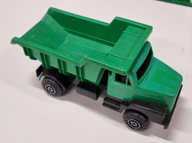 #2464 Leikkiautotalli + 2 Plasto kuorma-autoa