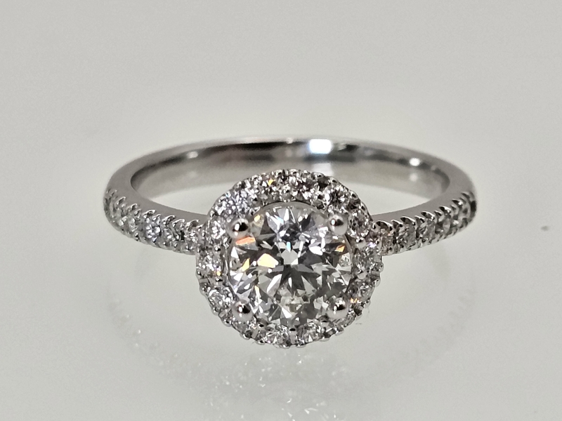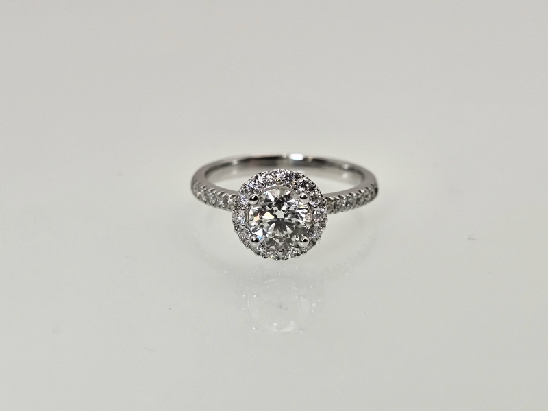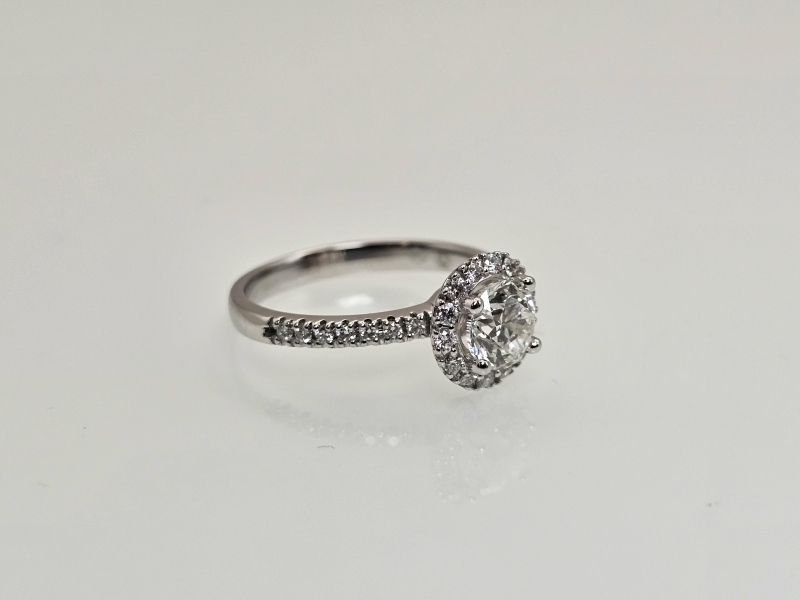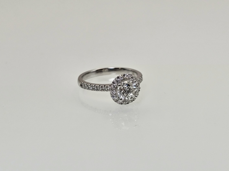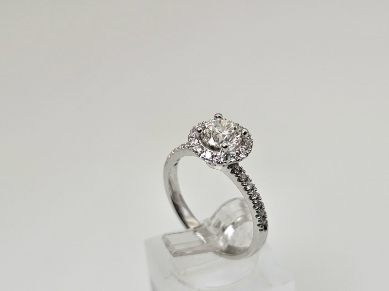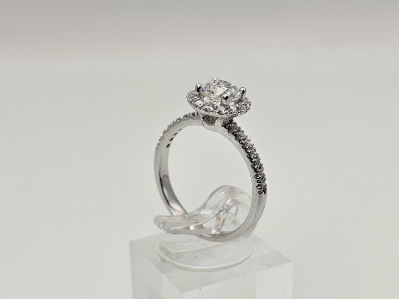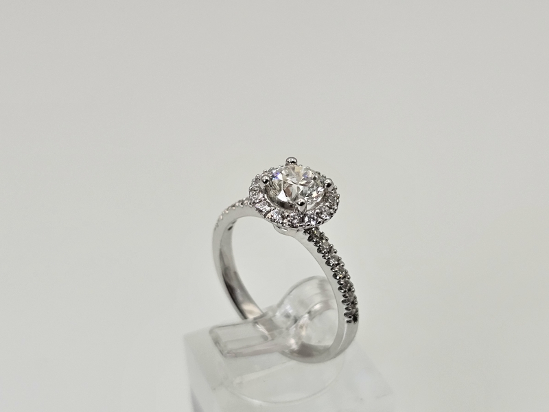 #1579 18k valkokultainen sormus timanteilla joista isoin 1,01ct Wesselton H timantilla, 3,65g