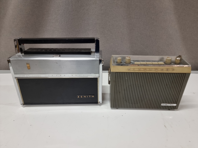 #2468 2kpl vanhoja paristokäyttöisiä radioita, Zenith Trans-Oceanic Royal 1000 maailmanradio ja Blaupunkt Derby