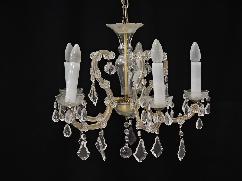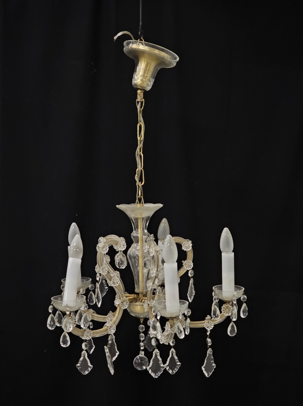 Muutamia kristalleja puuttuu. Valaisinosan korkeus 44cm
