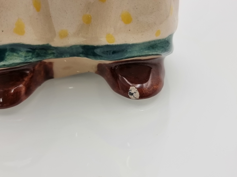 Jalassa pieni kolhu, hieman krakeloitumaa, kork.20cm