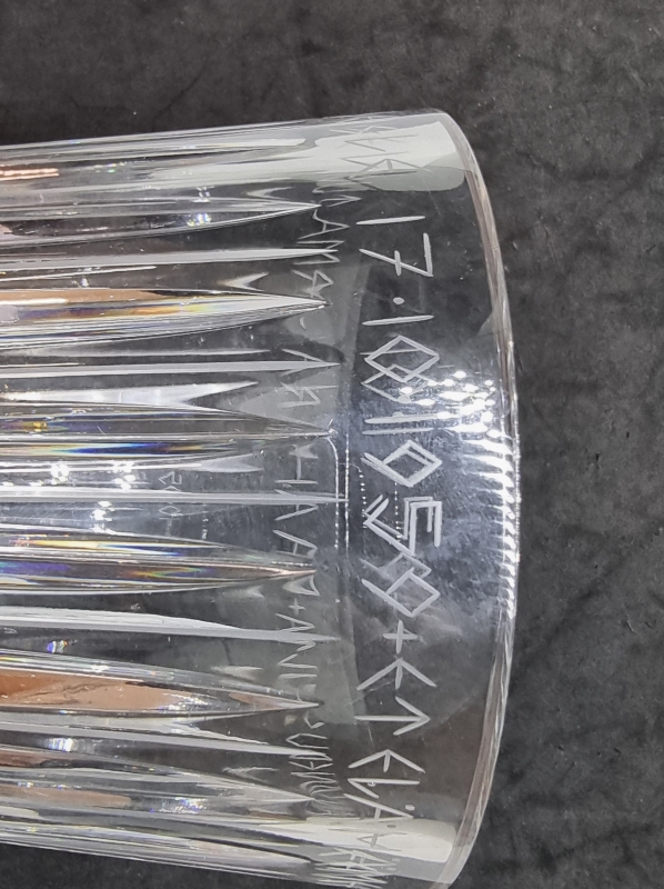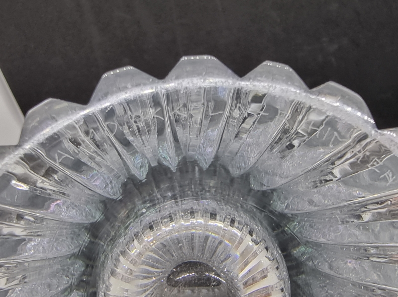 Minimaalisia reunavikoja. Sisällä samentumaa. Korkeus 34,8cm