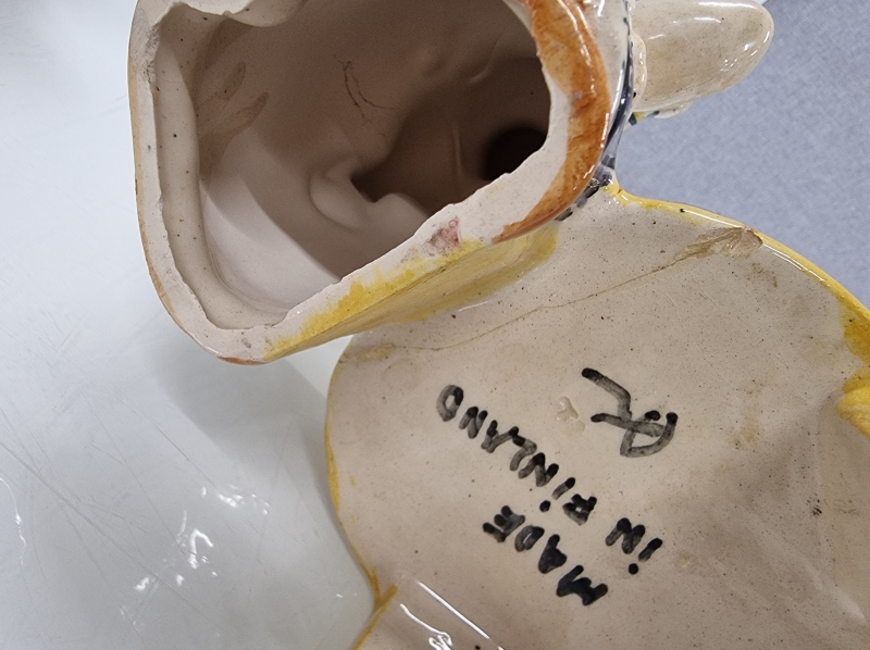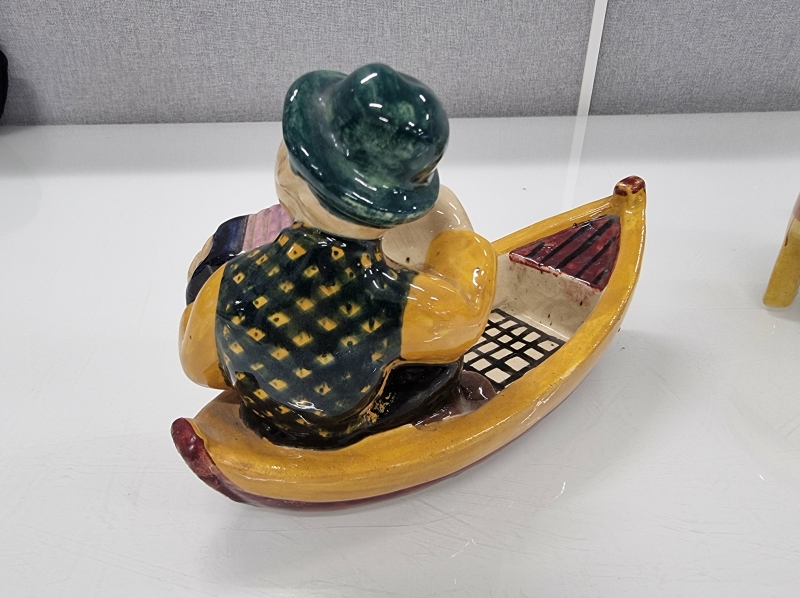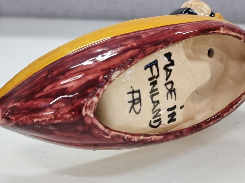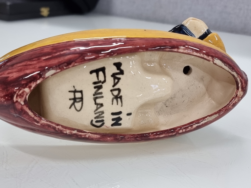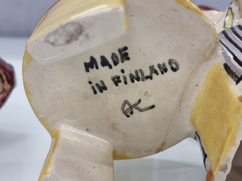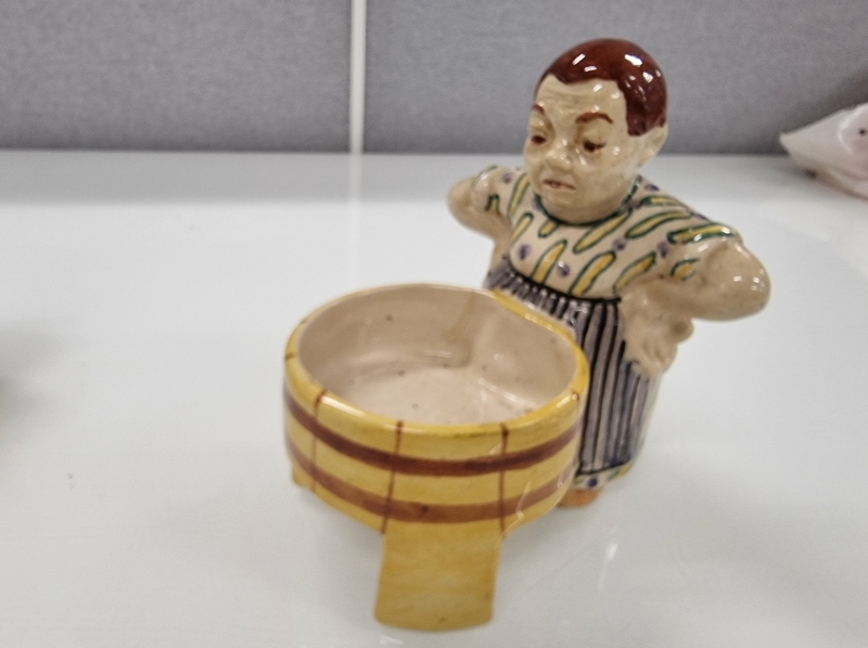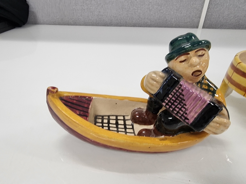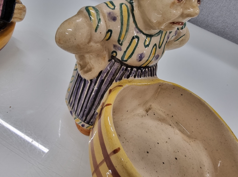 #614 2kpl Kupittaan savi esineitä, Haitarinsoittaja ja Pyykkimuija