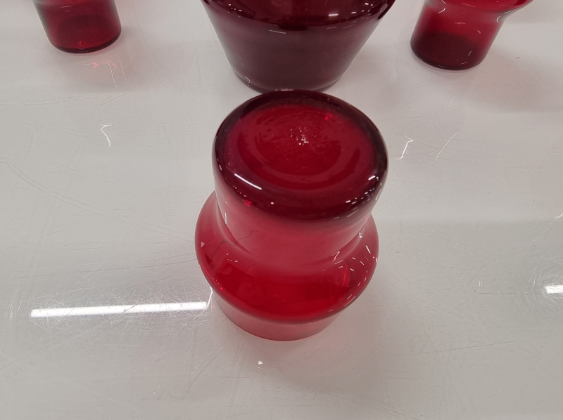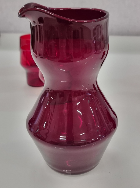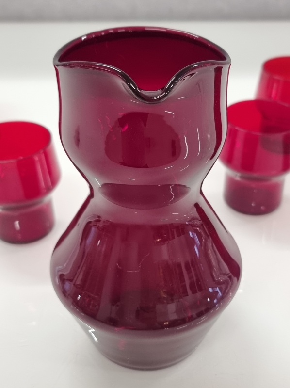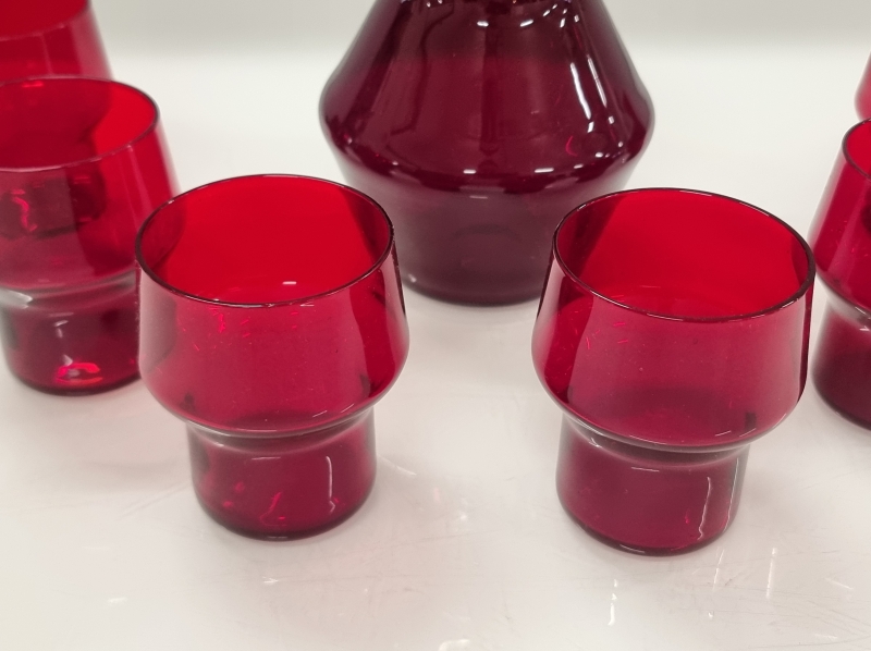 #74 - Helena Tynell, rubiininpunainen Siksak - kaadin ja 6 lasia