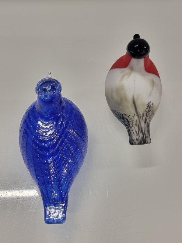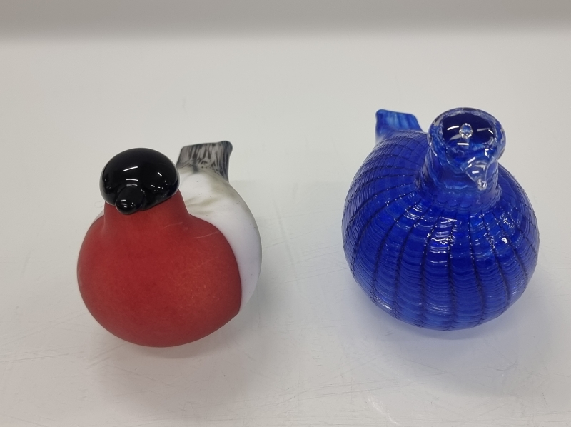 #62 - 2kpl Oiva Toikka, taidelasilintuja, Punatulkku ja Sinisulka