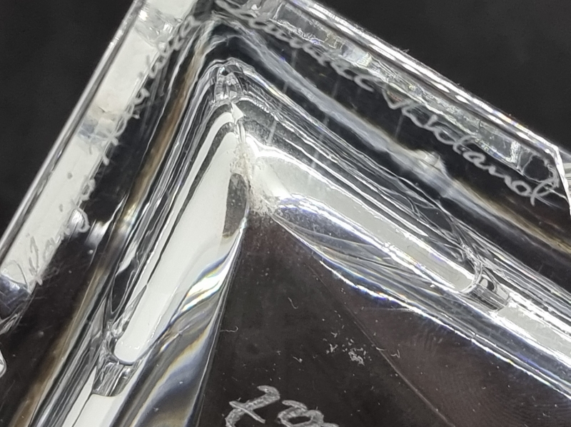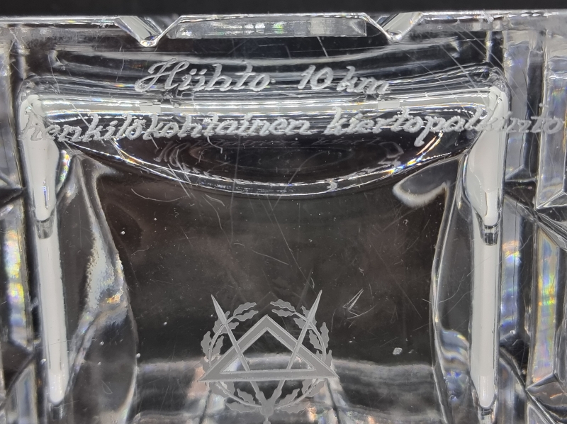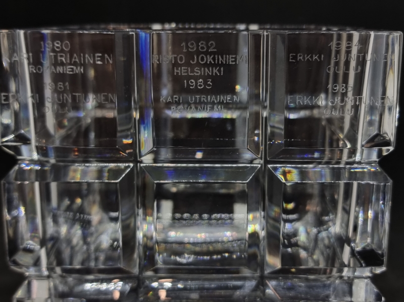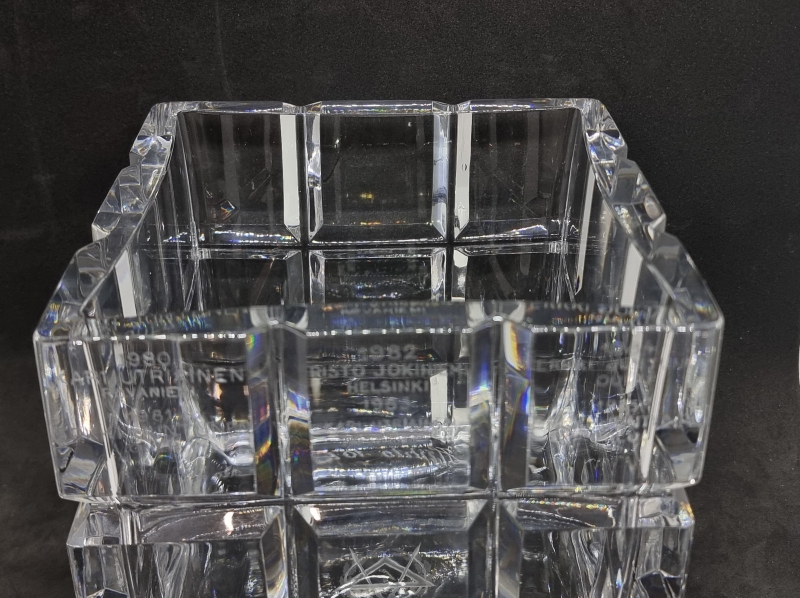 Virheetön. Sign. Kiertopalkinto, kaiverrukset pohjassa ja kyljessä. 16cm x 16cm x 16cm.