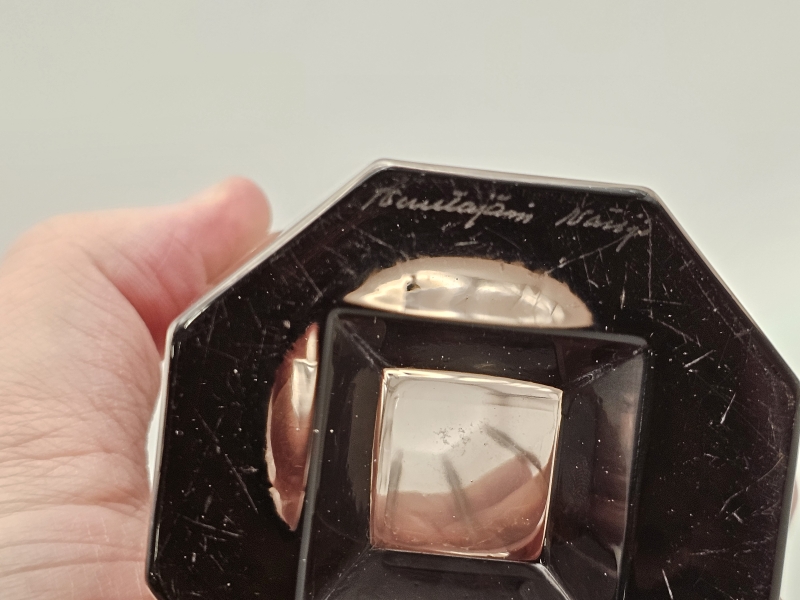 Yläosassa mitätöntä kulumaa, sign. Korkeus 19,2cm