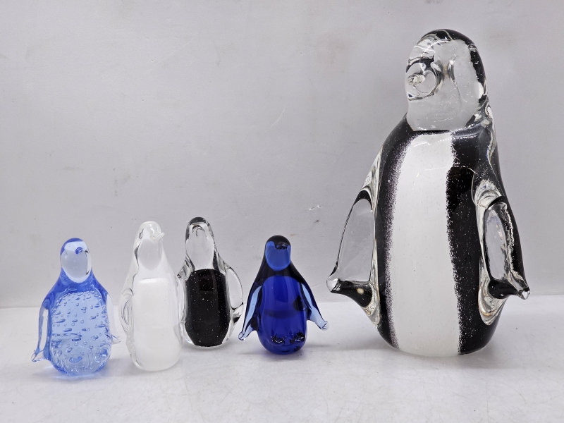 #119 - 1+4kpl lasisia pingviinejä, Lasiruusu / Jussis