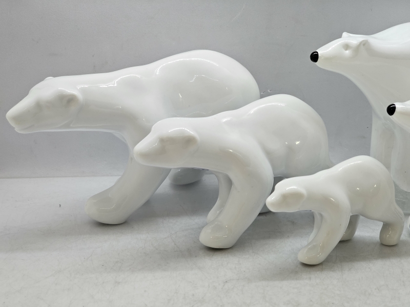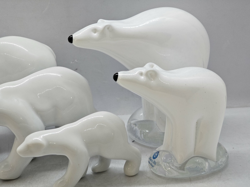 #120 Jääkarhuja: 2kpl Tarmo Maaronen Bianco Blu lasisia & 3kpl Porsgrund posliinisia