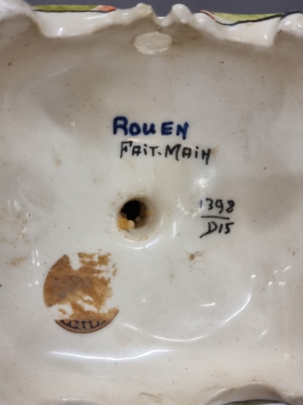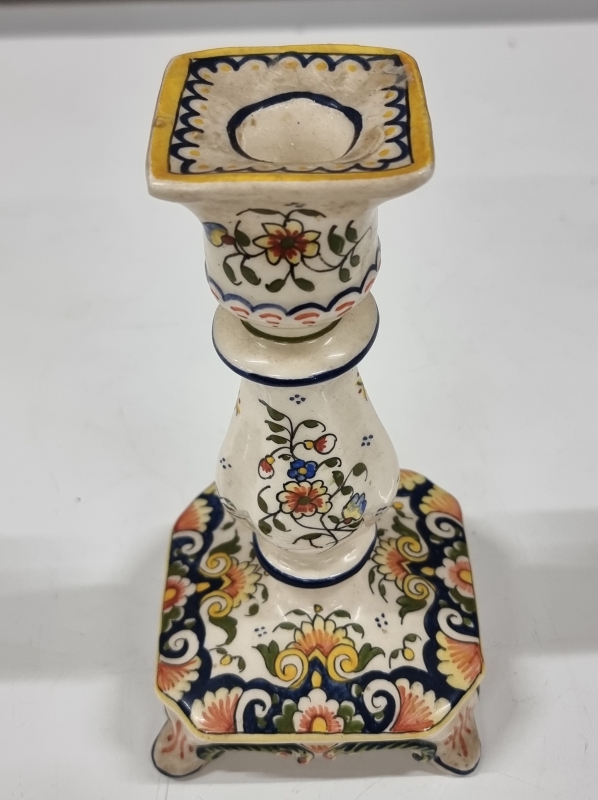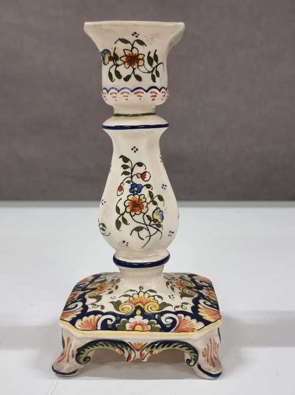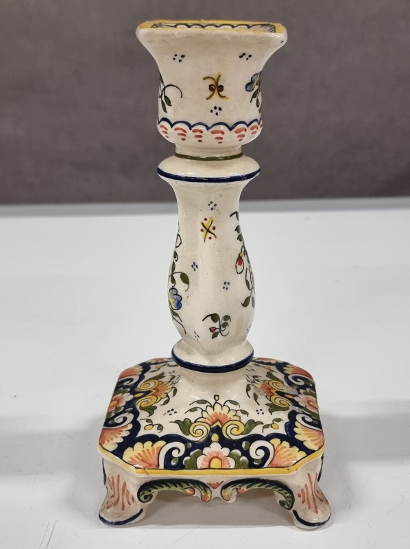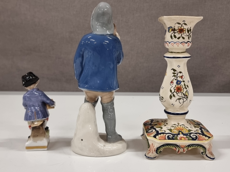 #636 - 2kpl posliinipatsaita ja keraaminen kynttilänjalka, mm. Rouen Fait Main