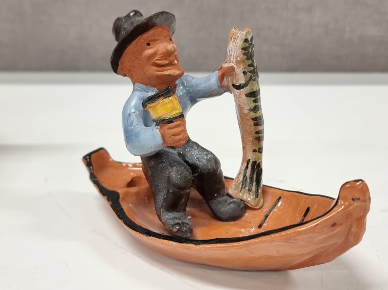 #658 - Kupittaan Savi kanakulho ja kalastaja -figuuri