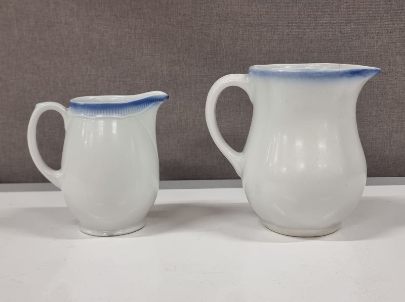 Hyväkuntoiset. Isossa kannussa yläreunassa valmistusvika. K: 16cm