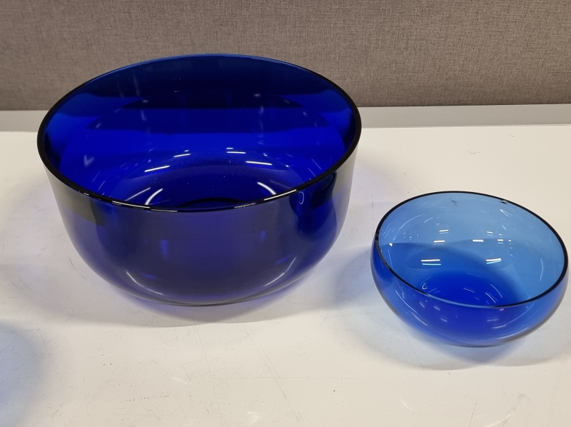 Yhdessä kulhossa reunavika. Ison kulhon h: 20cm