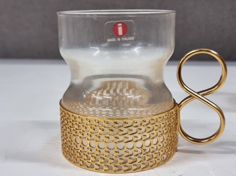 Virheettömät. Kullanvärisille alkuperäislaatikko. Lasin h: 6,5cm