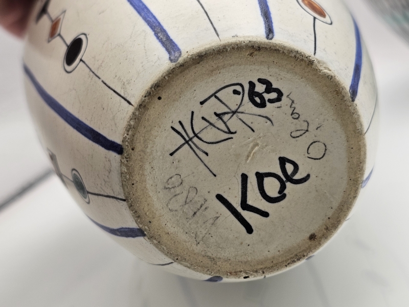 #718 2kpl Kupittaan savi esineitä: Okki Laine & Hendrik van Riemsdijk KOE-maljakko