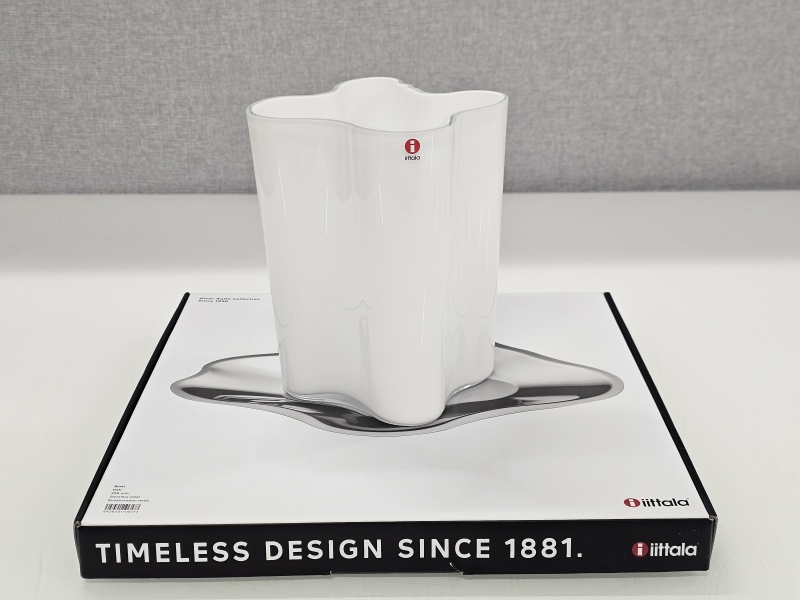 #295 Alvar Aalto teräsvati 358mm & valkoinen maljakko