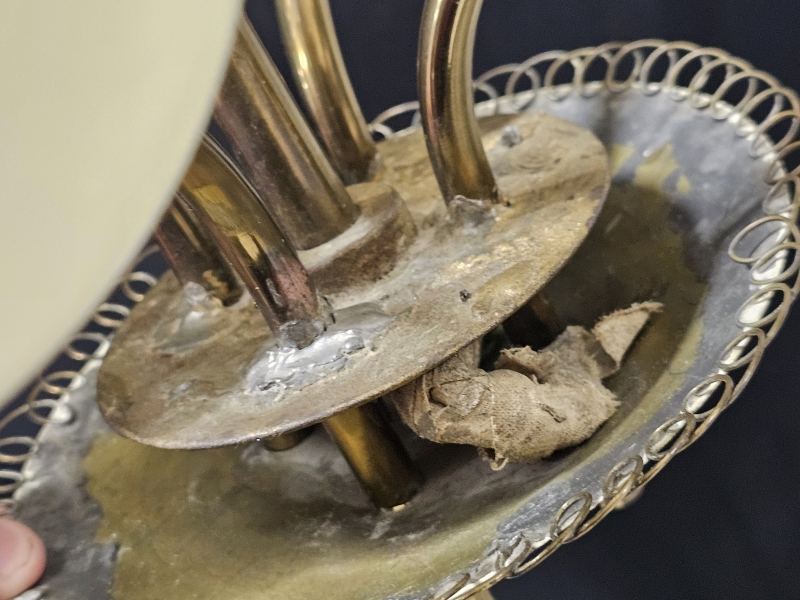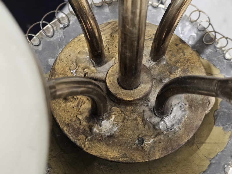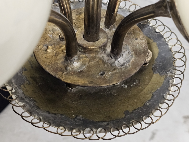 Korjauksia, juotoksia, haarat eivät symmetrisessä asennossa. K: 80cm. Yhdessä kuvussa halkeama