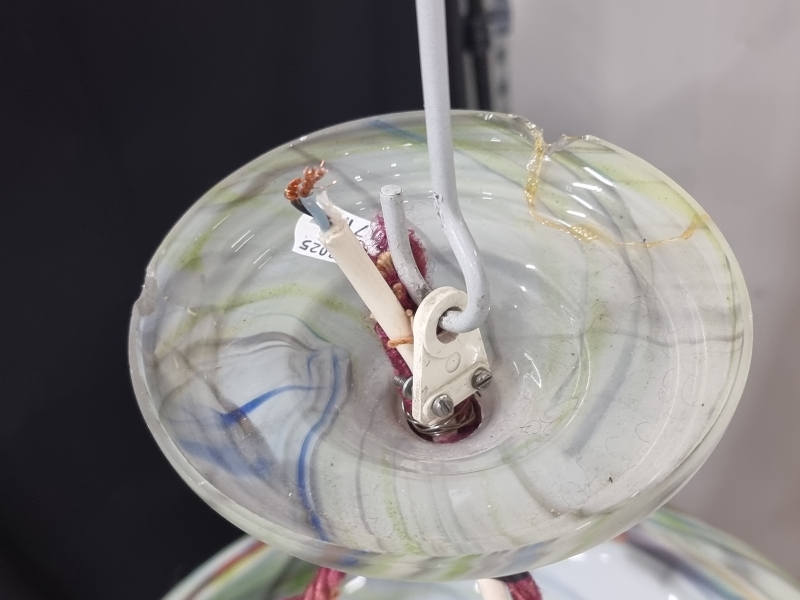 Halkaisija 36cm. Kattokuvussa puutteita ja liimaus.