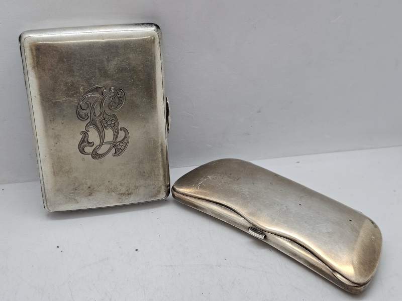 #1059 Paksu hopeinen savukerasia & silmälasikotelo