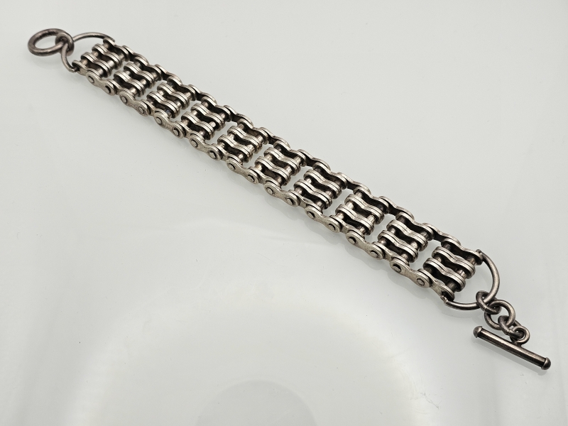 #1062 - Hopeinen "pyöränketju" rannekoru