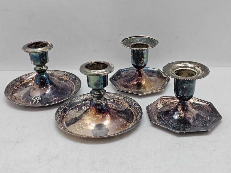 #1066 - 2+2kpl hopeisia kynttilänjalkoja