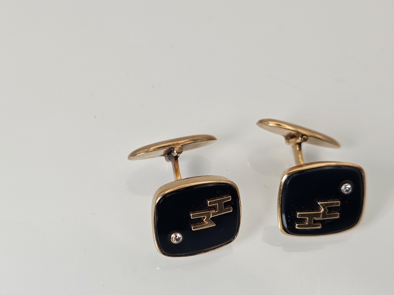 #1075 - 14k kultaiset kalvosinnapit timanteilla, 10,02g